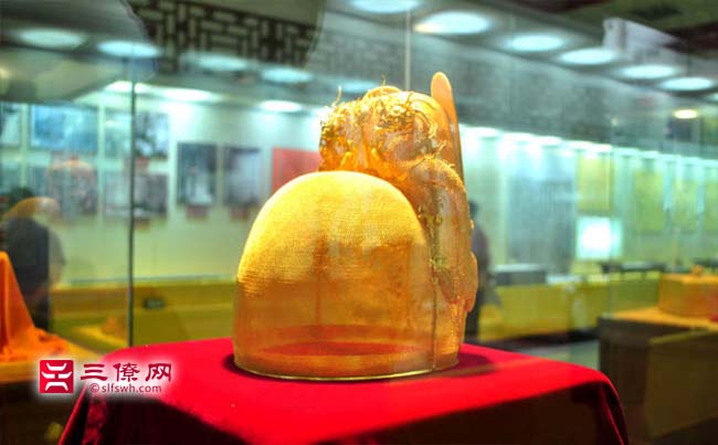 随葬有,天緯绒朝冠一顶,为皇帝上朝时戴的龙冠,金质银镶,十分珍贵;