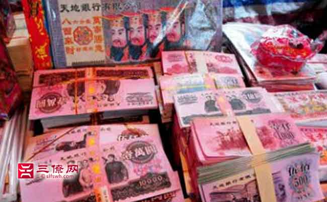求神祈祷,还愿做蘸,也要焚化纸钱。《金瓶梅》第八十四回写吴月娘往泰安州娘娘庙进香,“到了岱岳庙,正殿上进了香,瞻拜了圣像,庙毛彩直士在旁宣念了文书;然后两廊都烧化了纸钱,吃了些斋食。”冥钱是送给冥间鬼神的钱,所以自五代以后,阳间人们以冥钱为忌讳,把它视为不祥之物。南宋洪迈《夷坚志》叙述了这样一个故事:一个叫王德的少保,死后葬在离建康数十里的地方。绍兴三十一年,他的寡妻李夫人在寒食节扫墓的前一天晚上,住在城外一个农民家。在黎明的时候,这个农民说:昨天半夜的时候,王少保路过这里,花了五千钱向我买了谷米喂马,李夫人取过那五千钱一看,原来都是纸钱。于是非常伤感,扫墓祭祀完后,回到家便得病而死。