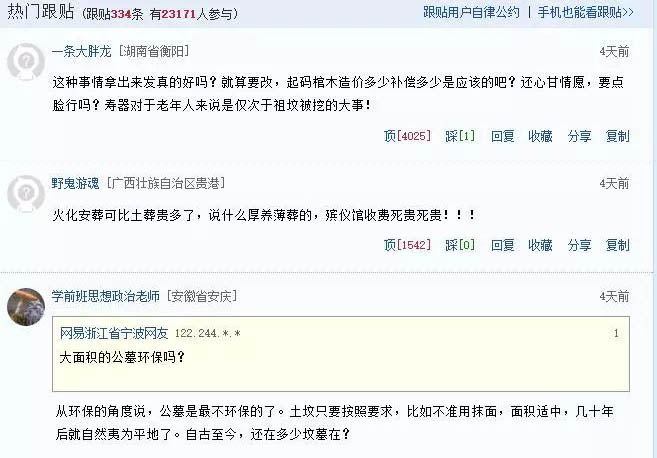 有些新闻是有看头的,也是很耐人寻味的。比如几天前澎湃新闻报道的:自殡葬改革工作启动以来,通过镇村干部的政策宣传与入户沟通,我市广大群众主动上交棺木,以实际行动支持殡改工作。截止6月23日,动员会召开后的第三天,全市24个乡镇(街道、场)共收到群众主动上交的棺木5871副,殡葬改革工作正在稳步推进中。