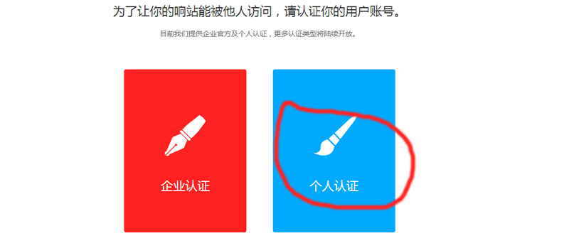 5、进入这里,点击个人认证。如果你有公司,也可以企业认证。