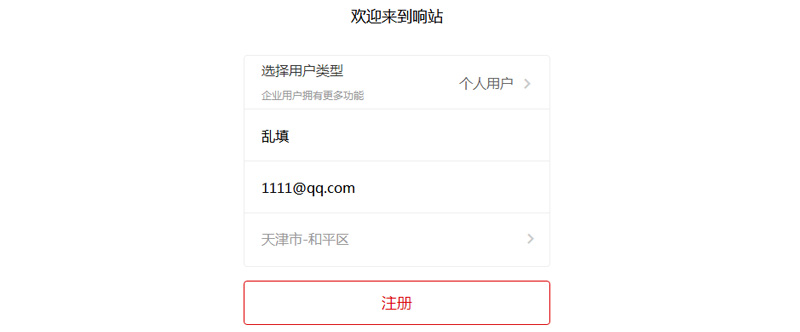 3、进入这个页面,选择个人用户,名字乱填,邮箱随便,1111@qq.com,点击注册。