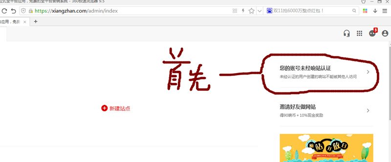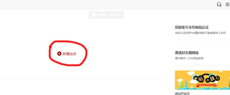 7、返回主页,点击新建站点。