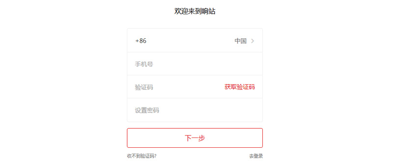 2、进入注册页面,输入手机号码,获取验证码。手机收到验证码后输入即刻,然后设置密码,点击下一步。