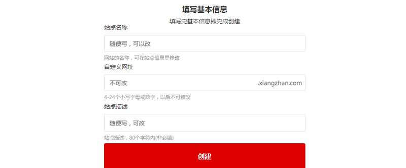 10、填写网站基本信息。站点名称,写你的名字,例如:风水师张某某。自定义网址,必须英文或数字。描述,随便写。