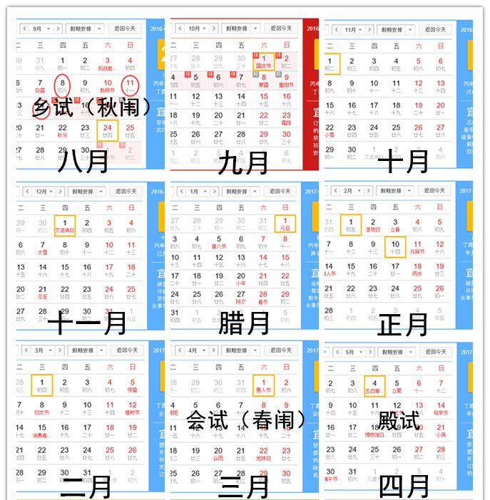 大升级:参加乡试,三年一次,八月举行,又叫“秋闱”。省级考试,朝廷官员主考。遇皇家有喜庆之事加科,称为恩科。乡试发的榜称为“乙榜”,又称“桂榜”。考中者称为“举人”第一名称“解元”。举人称孝廉,中了举人便具备了做官的资格。